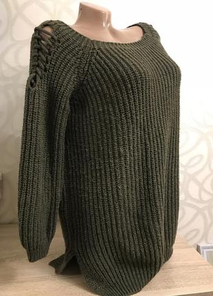 Светрик зі шнурівкою на плечах.Довжина 64ПОГ 52,Рукав 50 від горловини