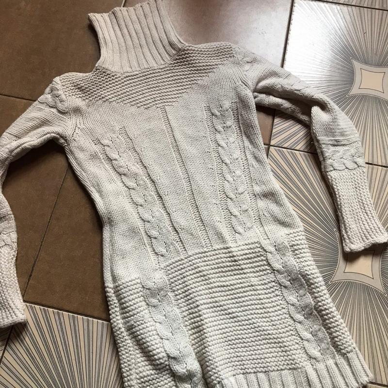 Теплий вовняний светр,плаття туніка молочного кольору під горло