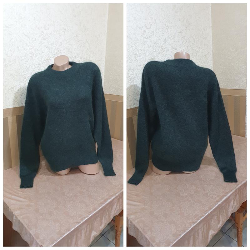 пог. 54. по низу 38. довжина 65. рукав 59. плечи 56. спущені. 32% mohair. 32% wool. 33% polyester. 3% elastane. дуже м'який і теплий.