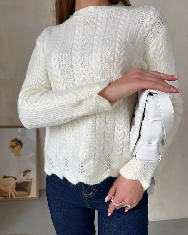 В’язаний светрик з косою😍 Будь в цьому сезоні в тренді🙌🏻 Такий приємний на дотик Мод:1009 Колір: білий , сіро-бежевий(як на фото 1 в 1) Розмір: універсал 42-44 Тканина : трикотаж в'язка Ціна 499 грн ansve