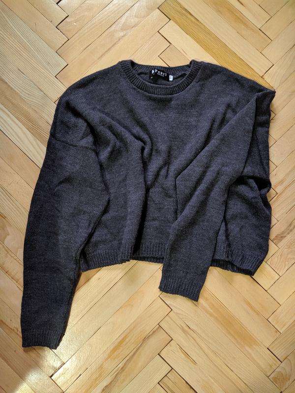 Укорочений базовий светр у красивому антрацитовому кольорі. У складі є шерсть.
