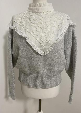 Жіночий светер,доповнений бітістовим мереживом,з горловиною,теплий,м’який,приемний на дотик,знизу манжети