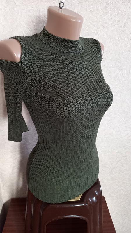 Гольф в рубчик з вирізом на плече,стрейчевий. Колір: хакі. Довжина-57 см. Довжина рукава(разом з вирізом)-30 см. О.гр.-75 (тянеться до 86 см.)