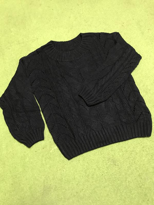 дуже теплий светр, гарна в'язка, глибокий чорний колір, низ та рукави манжет, розмір М