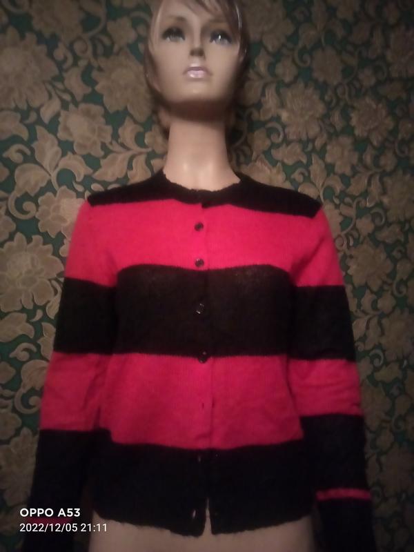 Светр тоненький,теплий ,на гудзиках,принт чорно-червоні з відтінком фуксії доріжки.ПОГ 45 Д 52