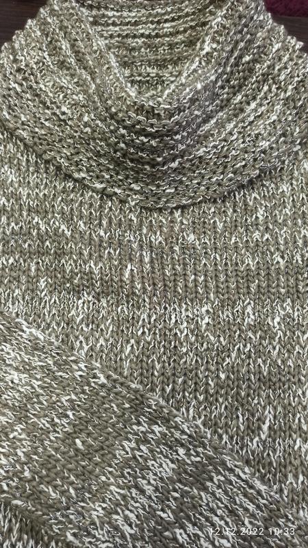 удлинённый свитер, мягкий очень приятный к телу, хороший,не большой ворот.,вплетена металлическая нить.пог.41 пот.36 поб 39, тянется легко.длина 74 рукав 64
