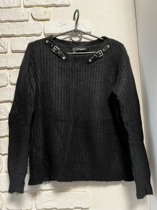 Свитер из ангоры,черный,очень мягкий и теплый.Не колется.Возле горловины кожаные ремешки с пряжками.Длина 53,Рукав 53 ПОГ 50