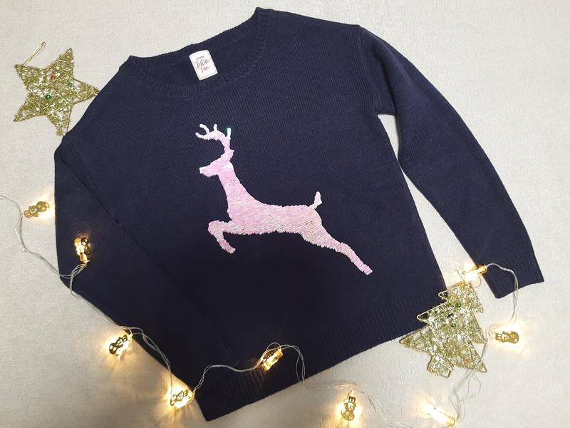 Новорічний светр олень🦌 🏷Товста середньої плотності (100% acrylic) Олень х пайєток двосторонніх ✅️Розмір 8-10 (36-38) підійде на жіночий ХС-М 📏Заміри: довжина 56 ПОГ 49 рукав 48 до шва, 65 до шиї