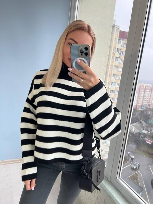 Смугастий светрик с високим горлом 💓 • виробництво Туреччина🇹🇷 • машинна в’язка • універсальний розмір • довжина 50см Ціна 800 грн