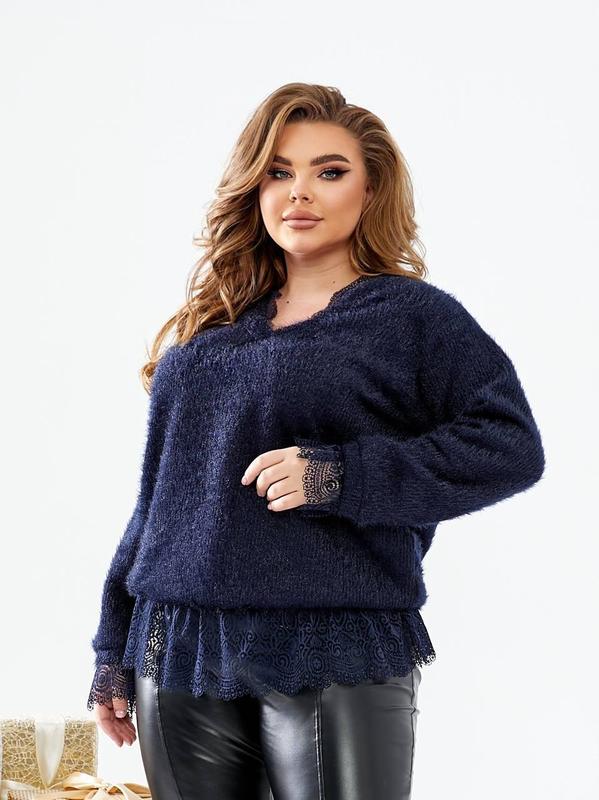 🥰🥰 Светр з кружевом🥰🥰 Мод.1854 Тканина - Ангора травка Кольори: червоний, пудра, темно синій, чорний Розміри: 50-52р, 54-56р. 58-60р. 👉 Заміри: Довжина светра -61 см. без кружева (+кружево 13 см. ) Довжина рукава - 55 см (+ кружево 4 см ) ✓50-52 Об'єм грудей - 120 см ✓54-56 Об'єм грудей -128см ✓58-60 Об'єм грудей - 136 см.