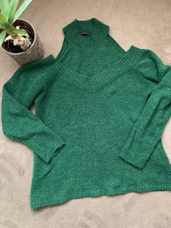 Тепла стильна яскрава кофта з відкритими плечиками шерсть приємна до тіла не колюча гарно тягнеться стан ідеальний
