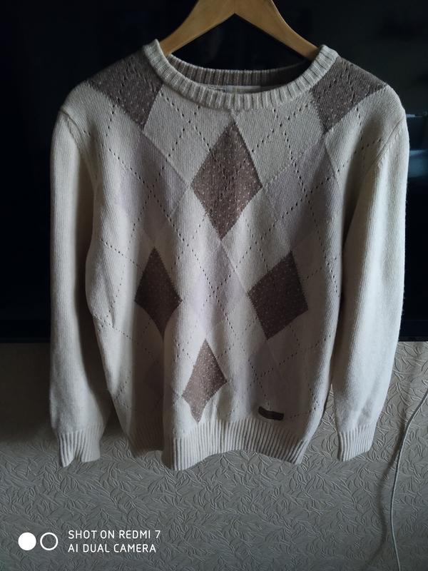 Вовняний светр у чудовому стані, перед у світлих тонах, спинка - кава з молоком.Розмір вказаний 16, але кращє буде на S -M. Рукав на плечі призібраний, на фото показала. Склад: 55% вовна, 45% котон. Светр теплий Заміри : Довжина 66 см Ширина 50 см Плече 12 см Рукав 58 см Вартість 550 грн