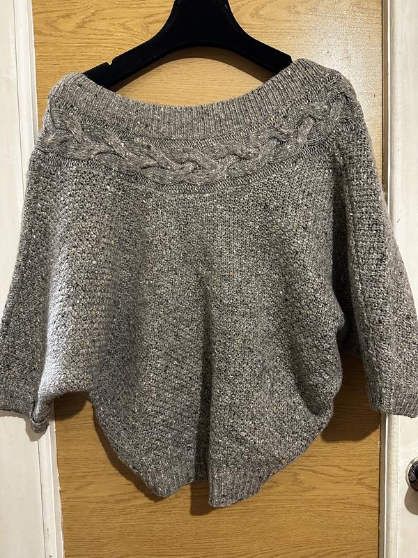 Тепла кофта дуже гарна чесно Модна така в’язка оздоблена косичкою ззаду замок він працює носила колись ззадом на перед як і кардиган Хороший стан Склад також супер Рукавичик вкорочений іде як литюча миш Зверху виріз можна носити під гольф сітка, сорочку ,або на голе тіло і навіть на одне пличе також гарно виглядає Довжина до бедра