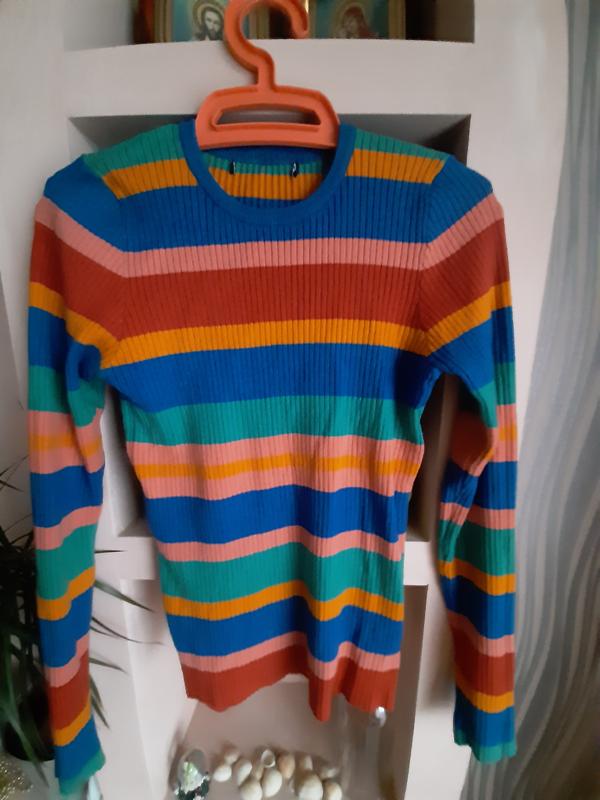 Трикотажний светр, дуже яскравий, приємний до тіла, тканина не крутиться, розмір s- m. Заходьте на мою сторінка, там ще дуже багато цікавих речей.