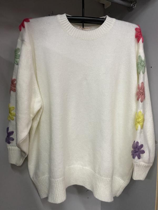 Стильна яскрава кофтинка батал, молочний колір, якість супер, виробник Туреччина, ширина 70 см, довжина 72 см.