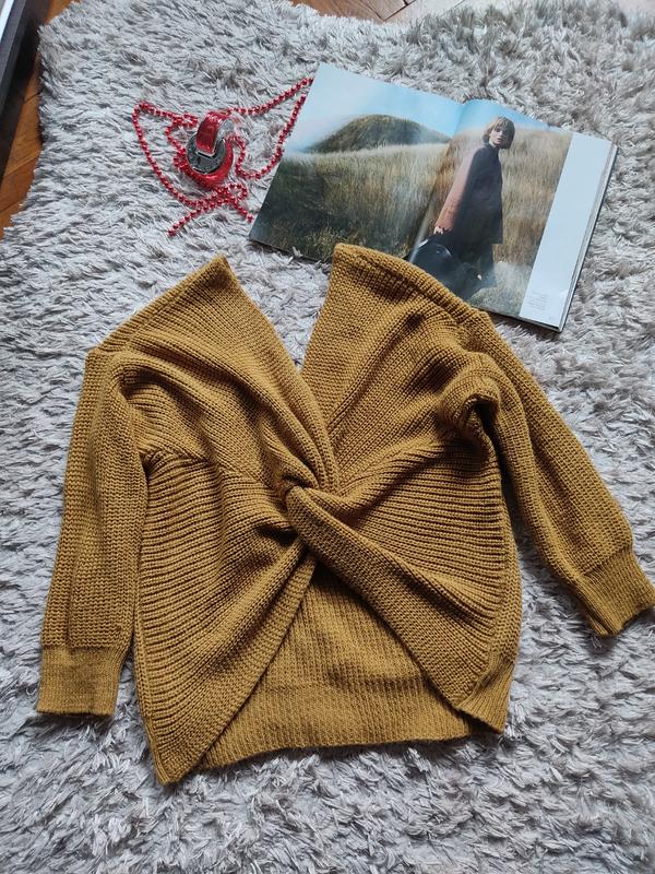 Светр гірчичного кольору з ефективним вирізом на спині. Розмір S-M