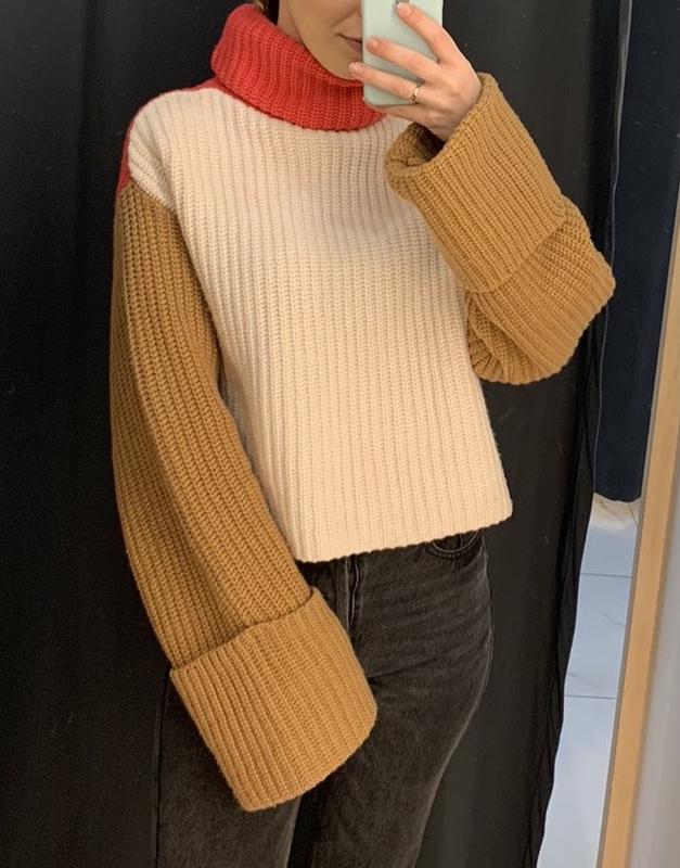 Светр вовняний крупної вязки з додаванням кашеміру. Оверсайз крій, довгі та широкі рукава, об’ємна горловина. Матеріал приємний (не кусючий). Одягався пару разів, стан відмінний.
