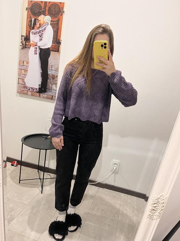 В’язаний светер укорочений розмір оверсайз підійде від хс до м