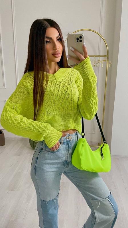 Знову в наявності💚💚💚💚 Яскраві вкорочені светрики з візерунковою в'язкою🤩 Щільна в’язка, склад: акрил, бамбук Виробник Туреччина🇹🇷якість🔥 Розмір єдиний 42-46, довжина 52см, ширина 58см, рукав 71см 〰️ Арт. 061 🏷 920 грн