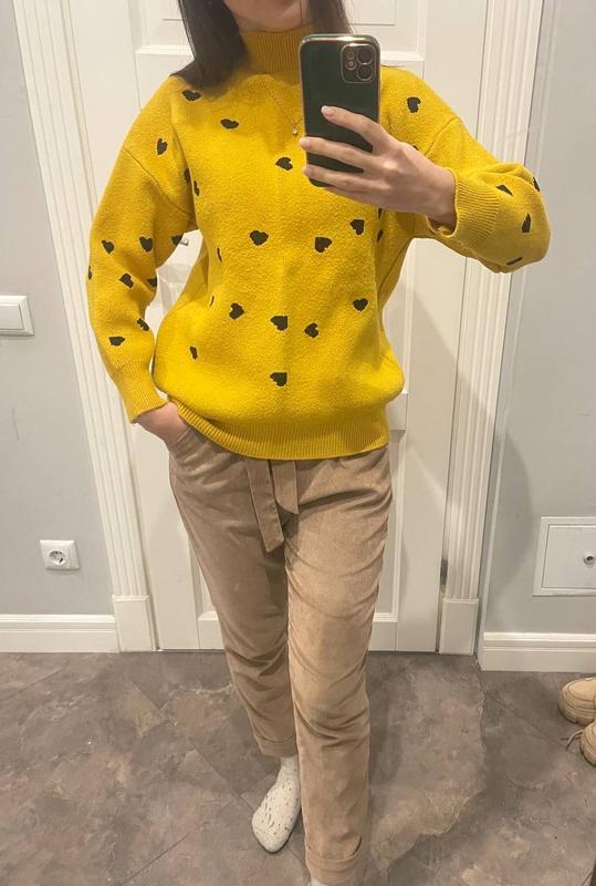 Светр гірчичного кольору у сердечко, дуже милий, теплий, приємний на дотик Розмір S Розбираю гардероб, дивіться ще мої речі у профілі)