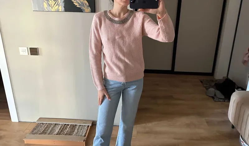 Рожевий светр в ідеальному стані Довжина 57 сантиметрів, від плеча до плеча 38 сантиметрів підлозі обхват грудей 45 сантиметрів рукава від пахв 47 сантиметрів
