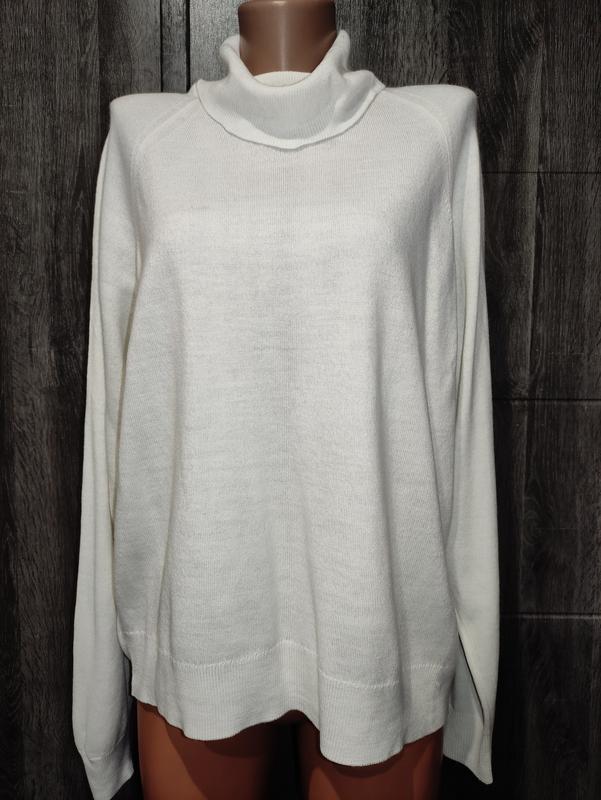 Чудовий светр гольф молочного кольору з високим горлом. Бренд BHS. Состав - 100% акрилик. Стан ідеальний. Розмір UK 18-20, дивіться заміри: ПОГ = 60 см ПО внизу = 53 см Довжина рукава від горловини = 82 см Довжина светра по спинці від горловини = 59 см Висота горла = 17 см Усі виміри зроблені м'якою вимірювальною стрічкою по вершині виробу. Виріб тягнеться. Дивіться інші мої оголошення — у наявності багато чудових речей! Є спідня білизна, взуття, брендові лляні речі (плаття, блузки, спідниці, штани, піджаки), багато фірмових колекційних іграшок (абсолютно реалістичні собаки різних порід і кішки). Підписуйтеся на мій магазин, щоб бути в курсі обнов). Повернення та обміну немає, робіть покупки задумано.