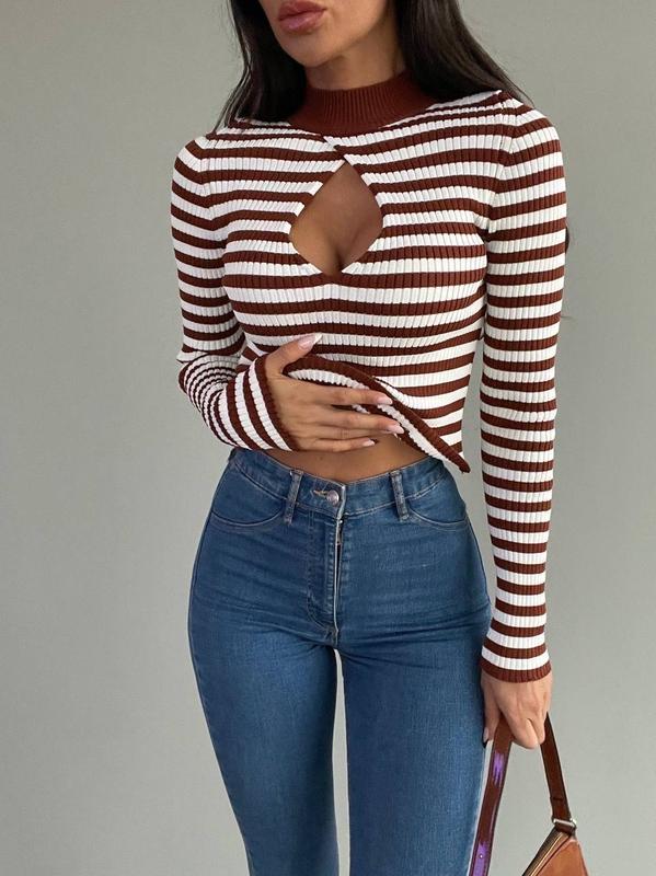 🤍Трендова новинка 🤍 Мегатрендовые кроп-топы в полоску с вырезом 🔝 ▫️Размер единственный (хорошо тянется ) ▫️Длина 45 см ▫️Высокое качество, Турция ✨870грн