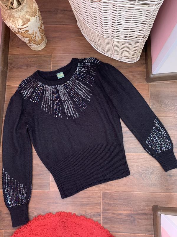 Теплий мохеровий светр з пайєтками розмір S 10. Заміри - довжина 60 см, ширина під руками 50 см, рукав 59 см
