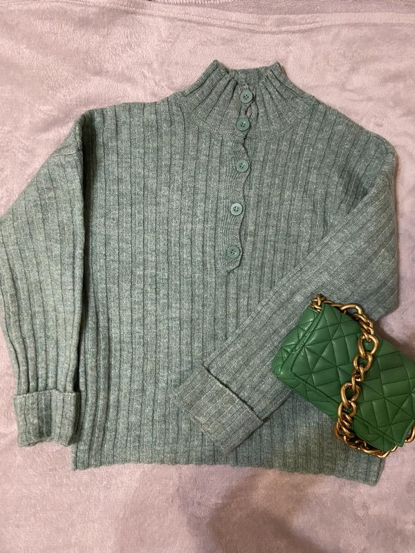 Очень приятный свитер с пуговицами, приятный к телу, размер М но может быть и на не большую L.