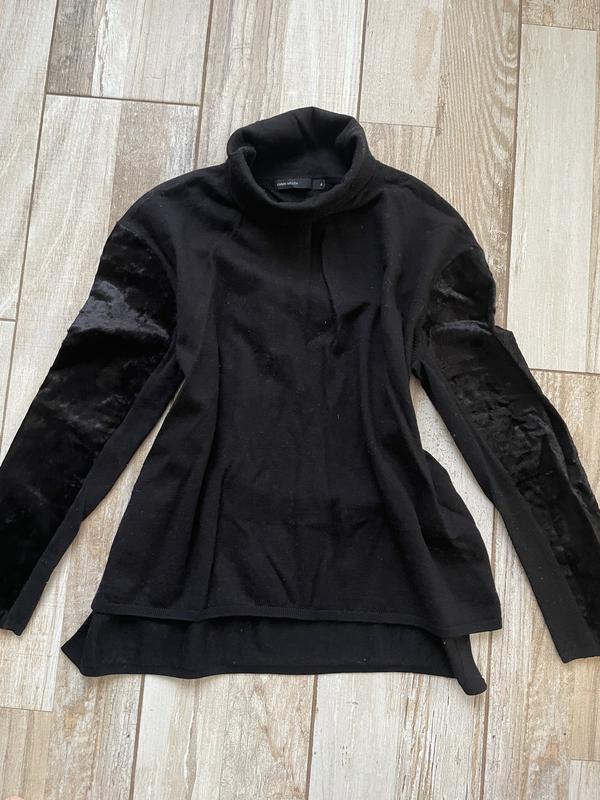 Теплий гольф чорного кольору зі вставками англійського бренда Karen Millen. Склад 43% шерсть 41% лиоцелл 14% поліамід 2% еластан Дуже теплий та стильний Розмір 4 на 46-48 розмір сяде ідеально