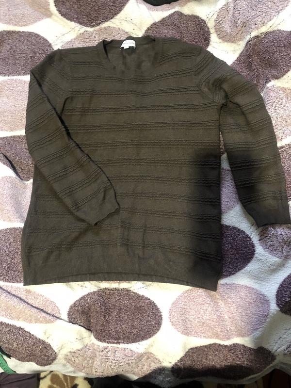 Красивая теплая кофточка, рукав 3/4, очень хороший благородный цвет зелено -горчичный , травяной . Вискоза 70% Размер S (но подойдет на подростка) Состояние новой без дефектов Тянется Длина изделия 53 Длина рукава 3/4 -45 Плечи 34 П/о грудь 43