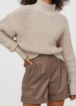 H&M Светр об’ємний , крупної в’язки , актуального бежевого кольору В складі 5%шерсті , дуже теплий та приємний до тіла , зігріває навіть у найхолоднішу погоду Об’ємний крій Розмір М Заміри : Пог 56 вільні Рукав від горловини разом з манжетом 76 , можна завертати рукав в манжеті Довжина 58