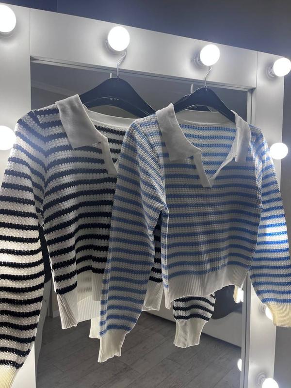 🛼Нова колекція🛼 5270 🌲 Класичний джемпер у смужку з комірцем «Поло» Матеріал - акрил (машинне в’язання ) 2 кольори (чорна смужка ,блакитна смужка ) Розмір Універсал 42-46 Ціна 690 грн 💶