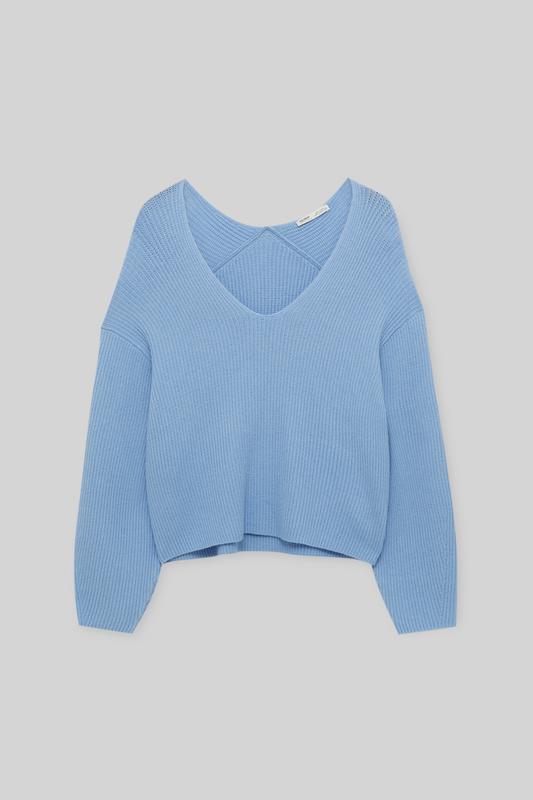 свитер,джемпер в красивом небесно голубом цвете , новый в упаковке длина 50 см,рукав 50,пог 48.есть такойже белый в размере S