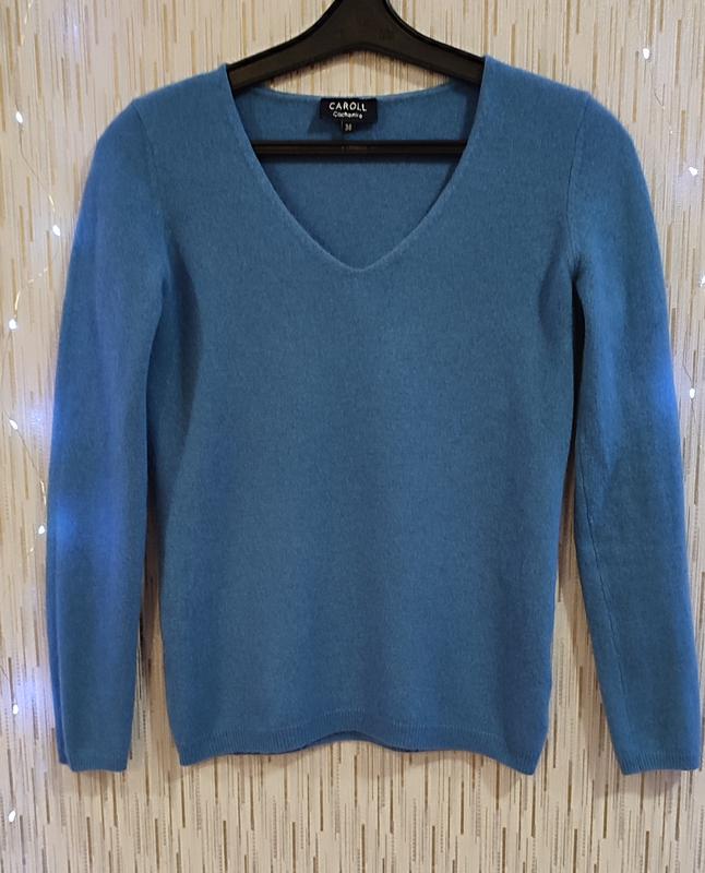 Небесно-голубой кашемировый свитерик с v образным вырезом.