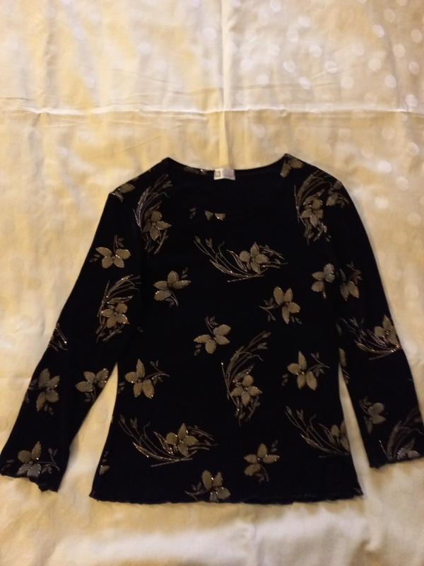 кофточка нова,чорного кольору з малюнком з люрексом,стреч,приємна до тіла довжина 53 рукав 46 півобєм грудей приблизно 46,кофточка стреч і тому може бути на більший розмір або на меньший, бо гарно тягнеться і лягає на тіло.