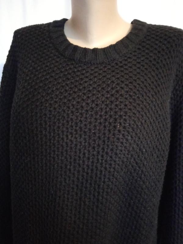 светр гарний,,колір чорний,хороший натуральний склад трикотажу28%вовна,52%коттон, довжина70см,між пахвами65 в спокійному стані і тягнеться більше,рукав довжина74,манжету можна підвернути