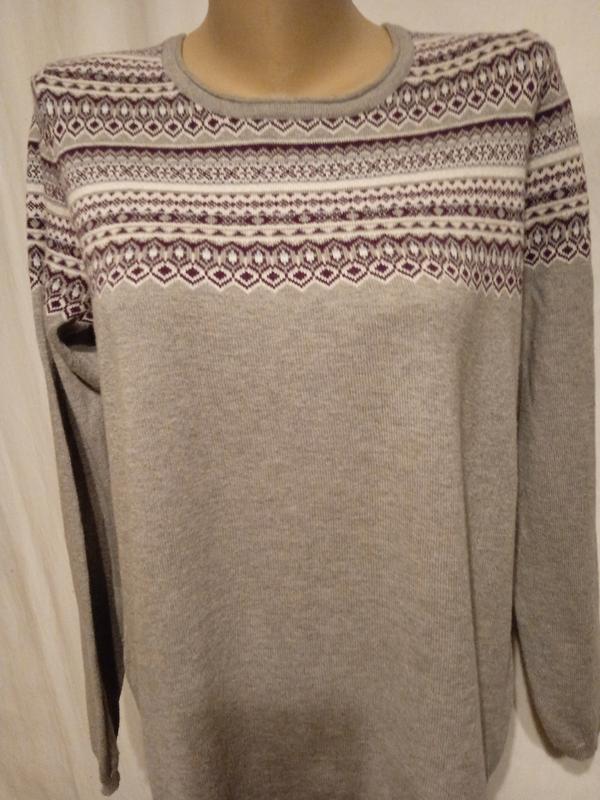 свитер красивый, нарядный,орнамент,хороший состав ткани, светло-серый цвет, длина64, пог-54,рукав64см,ширина по низу56-57 тянется легко60-63 скорей