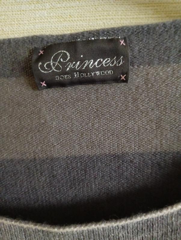 Кашемировый свитер Princess, вязка не плотная, как раз на весну. Без претензий. Указан 36-й, замеры плечи ( приспущены) 50, пог 48, длина 62, рукав от плеча 52 , от шеи 66. На полотне есть заводской нюанс, нити более темные, показала.