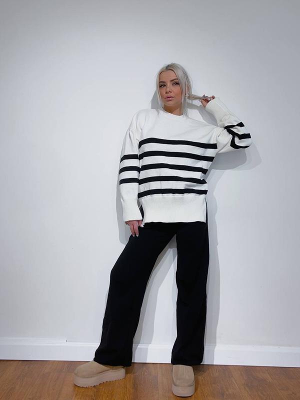 Ще один варіант смужки🥰 Розмір onesize Підходить від S до L Вовна/акрил/еластан Ціна 760 грн Стиль.Якість.Комфорт. Заміри смужка Довжина 68 см Напівобхват грудей 56 см Довжина рукава від горловини 72 см