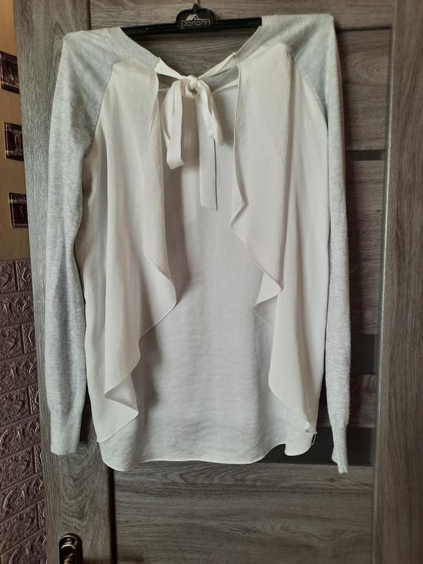 Довжина спереду 56 см, ширина напівобхват спереду 48. довжина рукава від горловини 72 см.