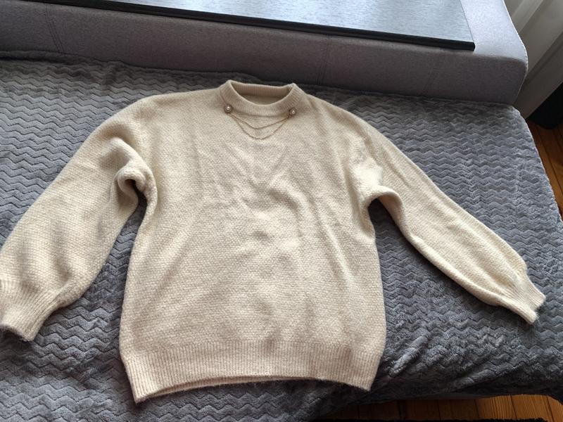Кофтинка жіноча в'язана ,розмір S-M бежевого кольору з золотими нитками типу люрекс одягнена 1 раз, не підійшов розмір ланцюжок відстібається