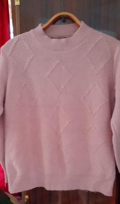 Класний светр, дуже добре тягнеться, м'який не багато пухнастий, на мій погляд є махера нитка, сподобається супер.колір ніжно пудровий.без дефектів, становлення нового.