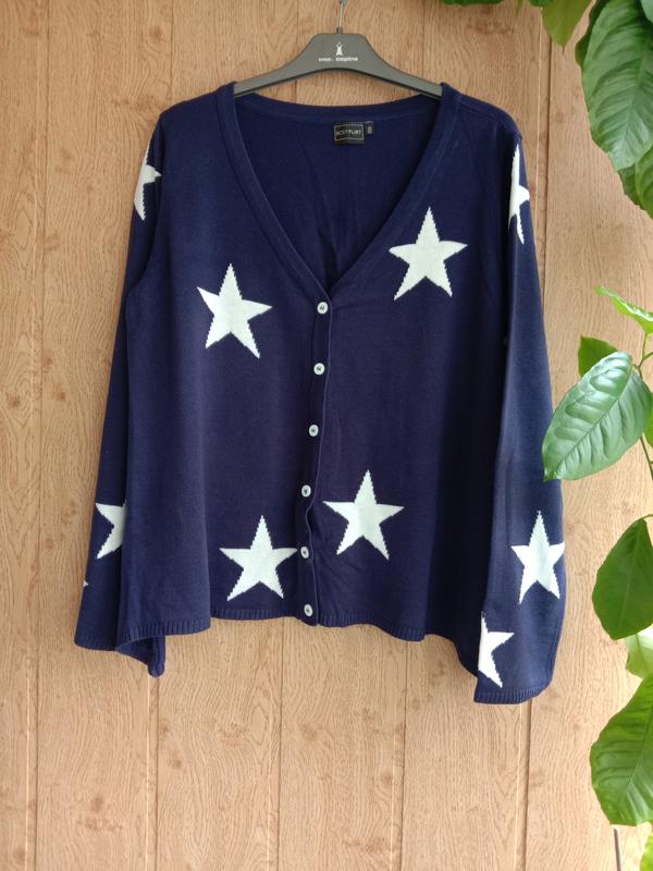 Абсолютно нова кофточка на гудзиках цікавого крою, гарного насиченого кольору, тоненький трикотаж, гарно пасує під джинси. Бокові шви трошки подовжені, що гарно виглядає, коли одягати. ПОГ- 55 см, довжина 57 см. Підійде на розмір 46- 48. Вибирайте собі подарунок з моєї сторінки за своїм вподобанням.