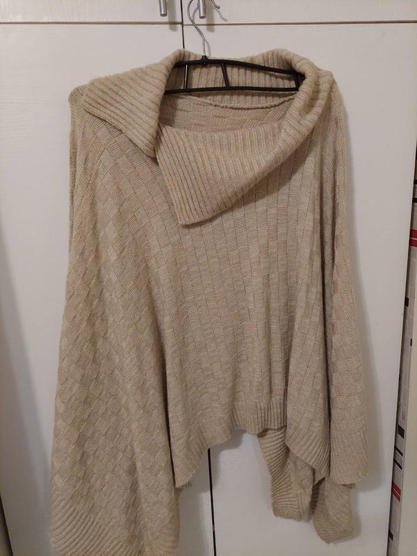 ТРИКОТАЖНОЕ пончо бежевый цвет ДЛИНА 66. ширина 78