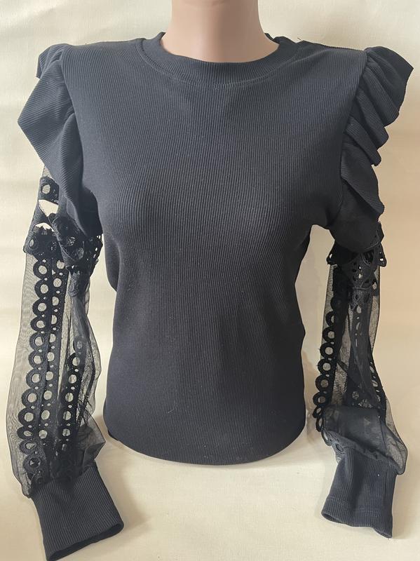 Стильна кофтинка в рубчик з дуже красивими рукавами. Розмір універсальний, буде на с, м, маленьку л.