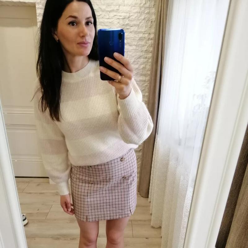 Неймовірно ніжна кофта від H&M, у складі шерсть Дуже крута якість. Об'ємні рукавчики, приємна до тіла. Ідеальне поєднання кольорів. Розмір XS-S Ширина плечей 48см Довжина рукава 56см П.О.Г 55см Довжина 60см Стан - нова
