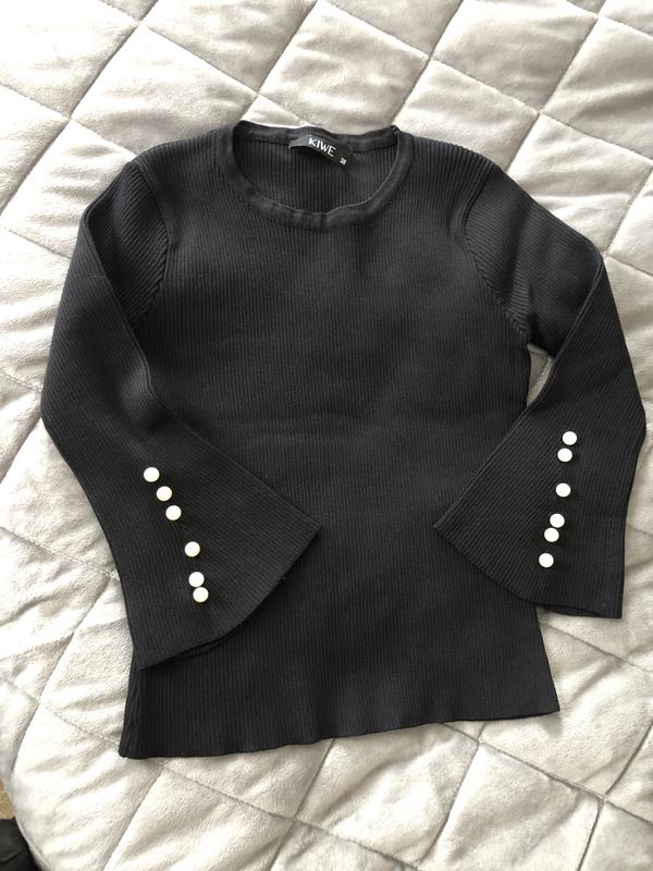 Кофтинка чорного кольору з намистинками на рукавах ,по бірці 38,але по факту 32.Орієнтуйтесь по замірах -довжина-45см,ПОГЛЯД-34см,плечі від шва до шва -29см,тягнеться,рукав -37-38см