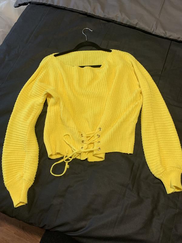 Светрик яскраво-жовтого кольору укорочений з широкими рукавами