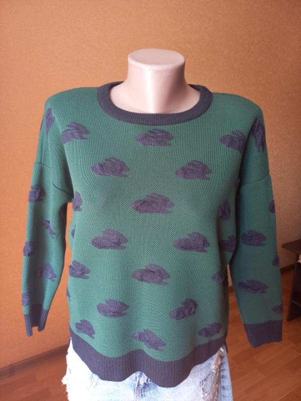 светр в принт з кроликами, на 44-46, максимум 48й., пог.55см., довжина 52/57см., плече приспущене, рукав від горловини 59см., від шва 37см.